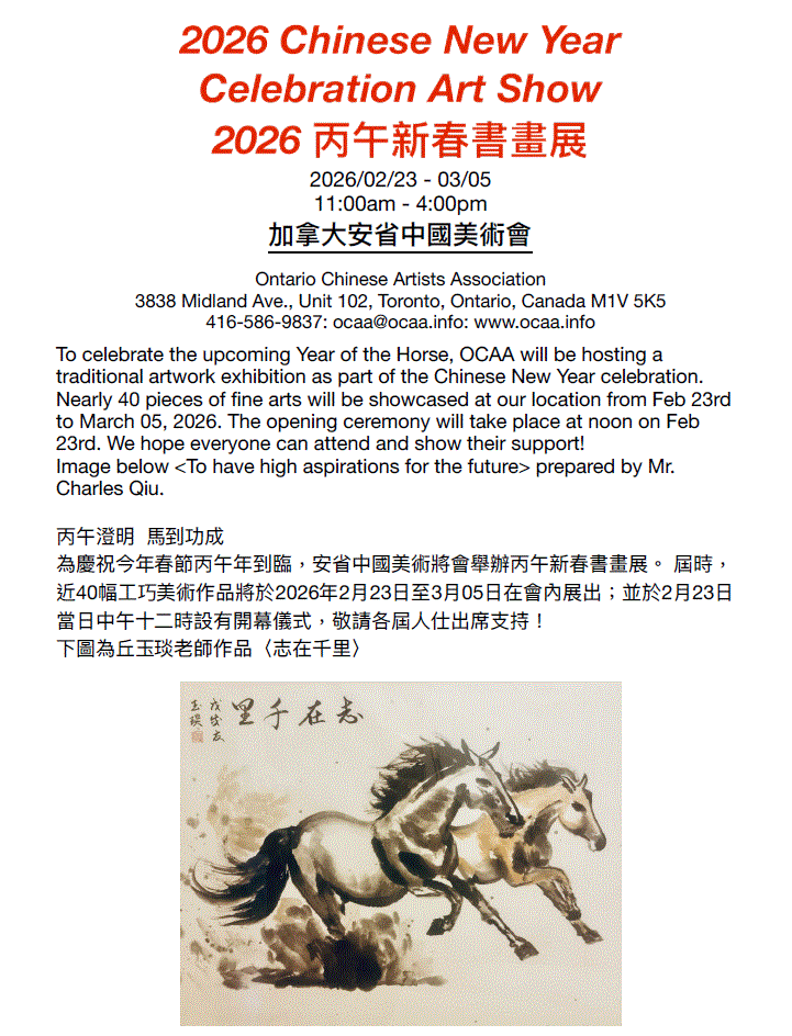 請點擊右方連結查看詳情: 安省中国美术会举办2026丙午新春书画展 – 轻松加拿大